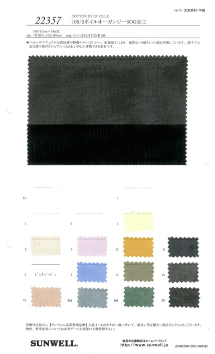 22357 100/2 voile organza SOG processing