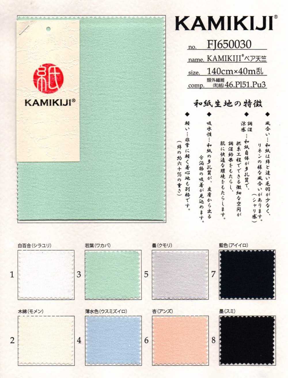 This fabric is made from Japanese paper and is highly absorbent, quick-drying, and has a light, firm, and dry textile.