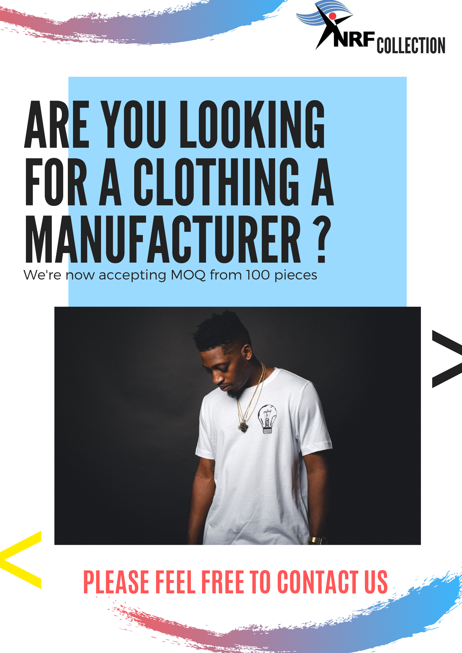 NRF COLLECTION an excellence of execution manufacturer, exporter of all kinds of ready-to-wear woven and knitted custom clothing garments for men, women & kids. Our wide and expert range of clothing manufacturing services, quality delivery and competitive prices have made us one of the most reliable names among our worldwide clients.