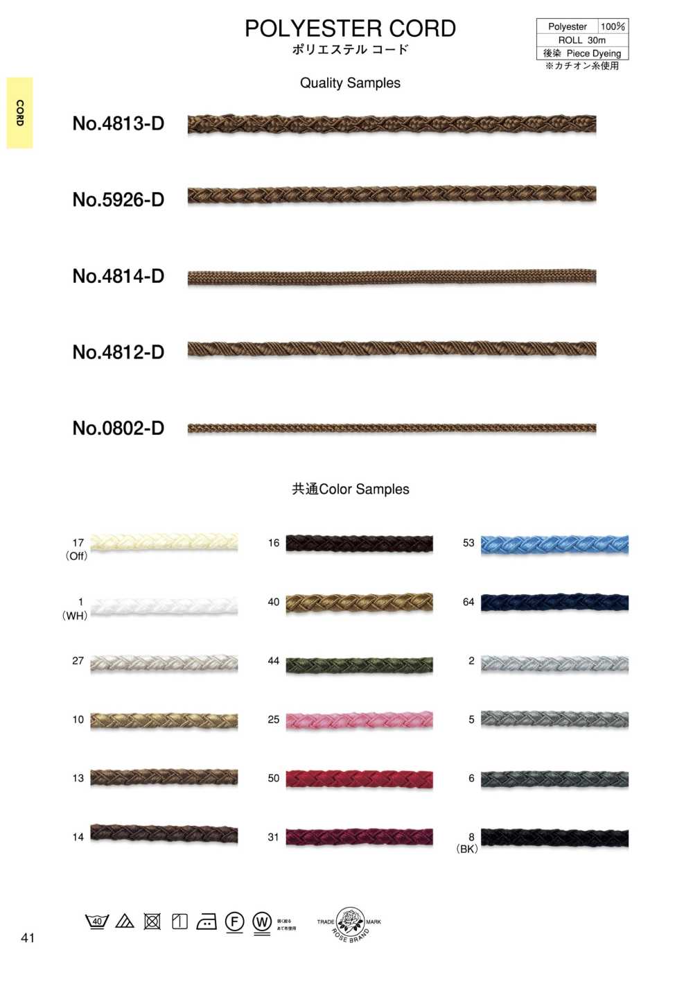 4813-D Polyester Cord (Approx. 6 Mm)[Ribbon Tape Cord] ROSE BRAND(Marushin)