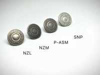 Stamped type stamped metal button for thick fabrics such as jeans and leather. The head of the button is fixed so that it does not turn. Compared to thread attachment, it can withstand strong horizontal pulling, so it can be attached firmly.