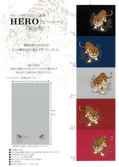 | Specification | textile width: 121cm 1 cut to order: about 2m [Pattern size] [Dragon/Tiger] Dragon: Length 17cm/Width 16cm, Tiger: Length 19cm/Width 13cm [Dragon] Length: approx. 17cm / Width: approx. 16cm [Tiger] Length: approx. 19cm / Width: approx. 13cm [Glaring Tiger] Length: Approx. 19cm / Width: Approx. 19cm [Hawk] Length: approx. 16cm / Width: approx. 13cm |