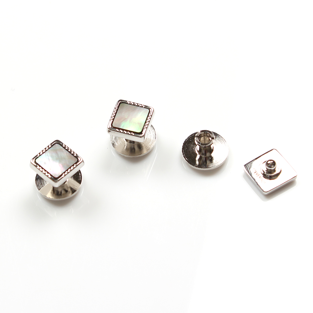 Sterling Silver Stud Buttons, Mother Of Pearl Shell Silver Square Type