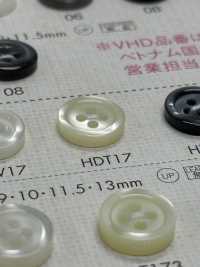 A shell like polyester button from the shock-resistant "HYPER DURABLE" series of "SMALL BUTTTONS COLLECTION" for spring and summer. It has features such as impact resistance, heat resistance, lead-free, and fluorescence-free.