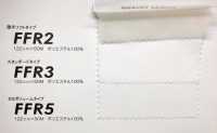 It is compatible with a wide range of materials and uses processed thread with moderate stretchability, so it stretches in both the vertical and horizontal directions, follows the movement of the outer fabric, and does not impair the texture of the outer fabric. The wide width 122cm width allows for efficient molding. Also, the use of polyamide double dots provides stable adhesive strength. It is available in three types: thin (FFR2), standard (FFR3), and semi-volume (FFR5), so you can choose the one that best suits your desired texture. Please note that the color variations are different from the standard type FF3. The color sample image uses FFR3.