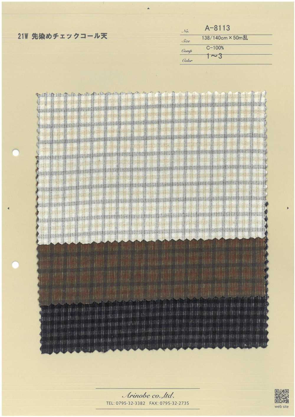 A-8113 21W Yarn Dyed Check Corduroy[Textile / Fabric] ARINOBE
