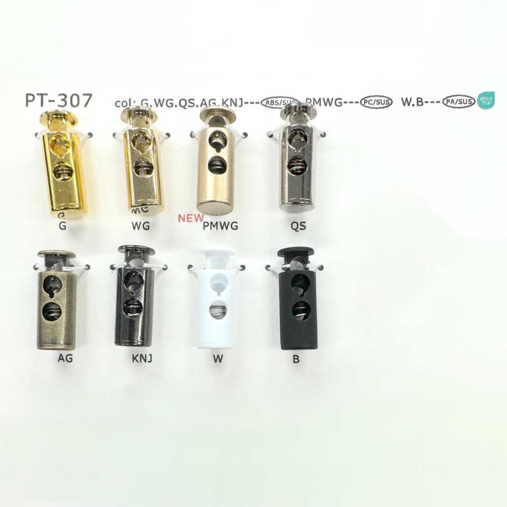 This is a cord stopper with two holes lined up vertically. The wide range of colors makes it easy to match colors even with textile that have a wide variety of colors. The holes are arranged vertically for a neater look.